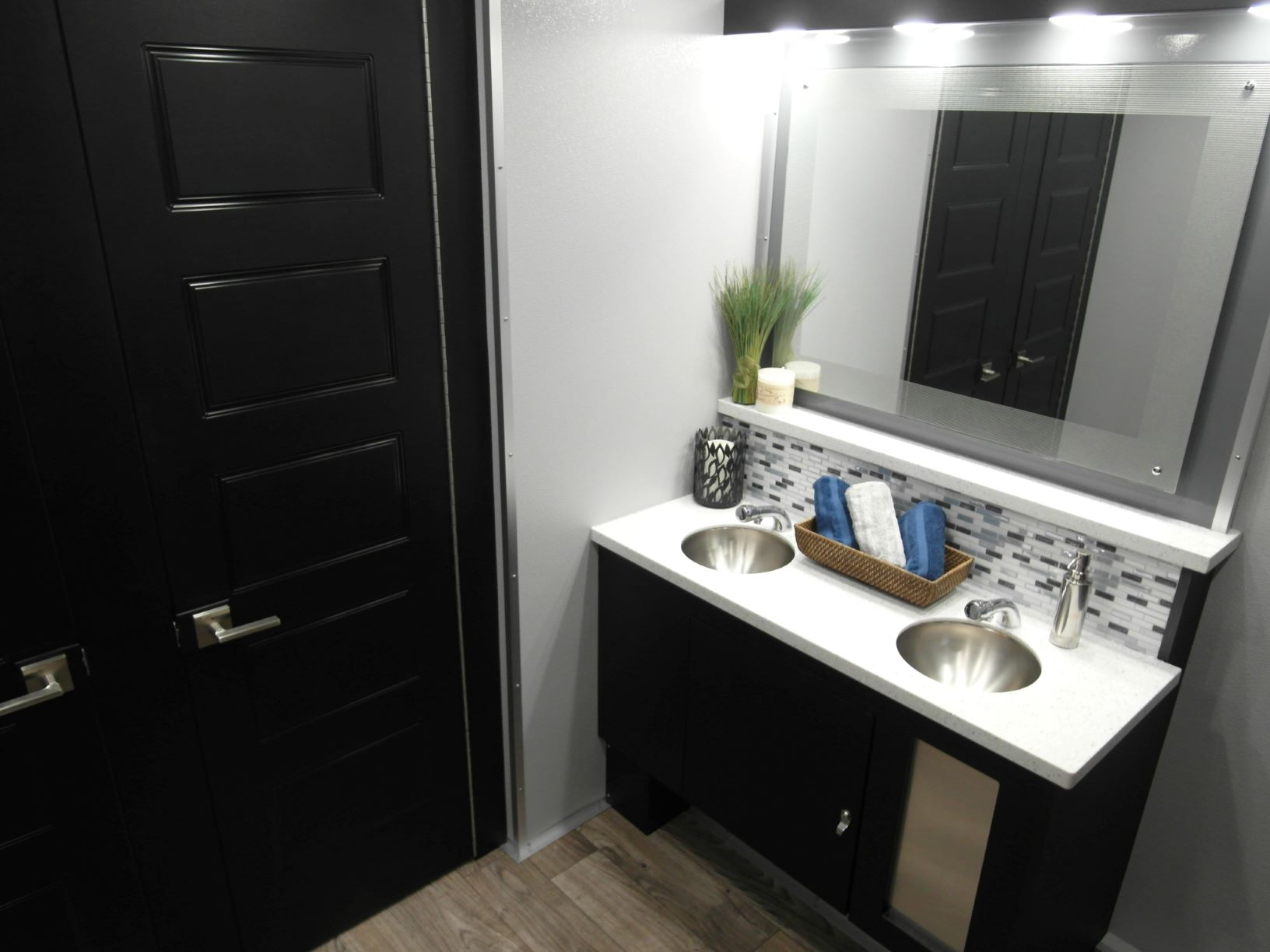 Modern fixtures, elegant countertops, full-size mirrors, and LED lighting create an upscale atmosphere.